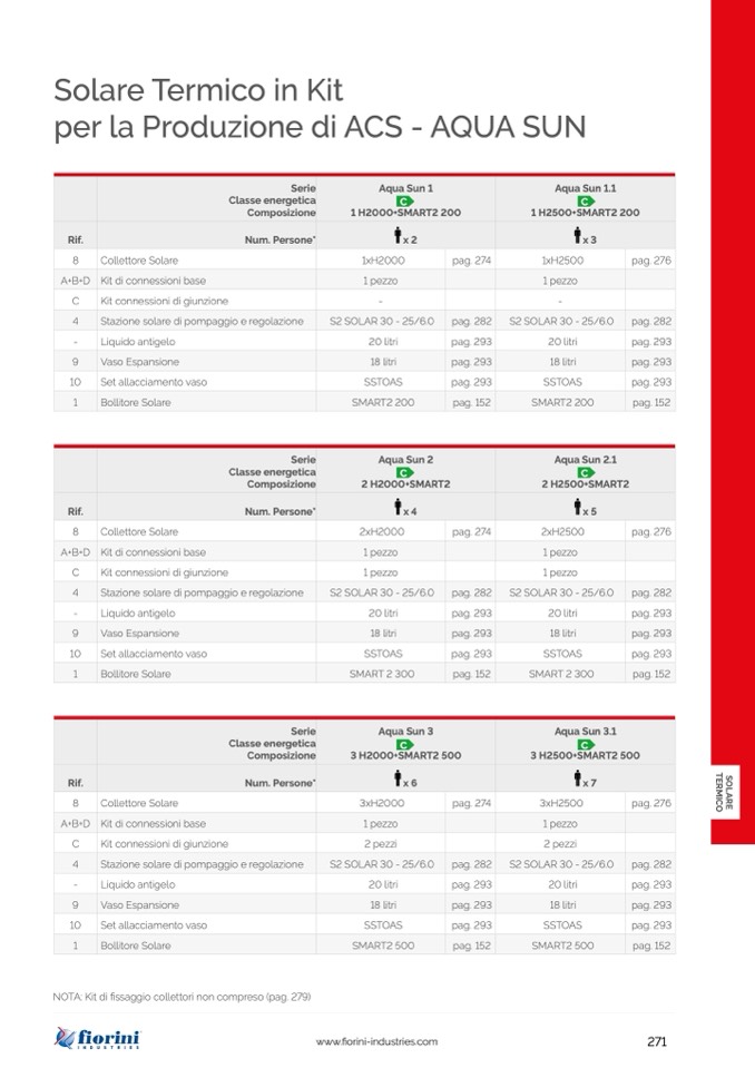 NOTA: Kit di fissaggio collettori non compreso (pag. 279)