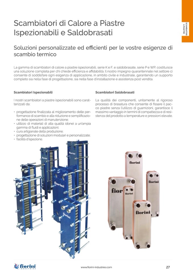 La gamma di scambiatori di calore a piastre ispezionabili, serie K e F, e saldobrasate, serie P e WP, costituisce