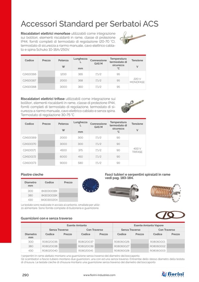 bollitori, elementi riscaldanti in rame, classe di protezione IP44,