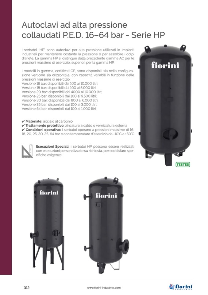 I serbatoi “HP” sono autoclavi per alta pressione utilizzati in impianti