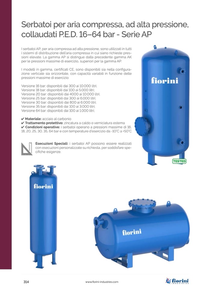 Versione 25 bar: disponibili dai 300 ai 6.000 litri;