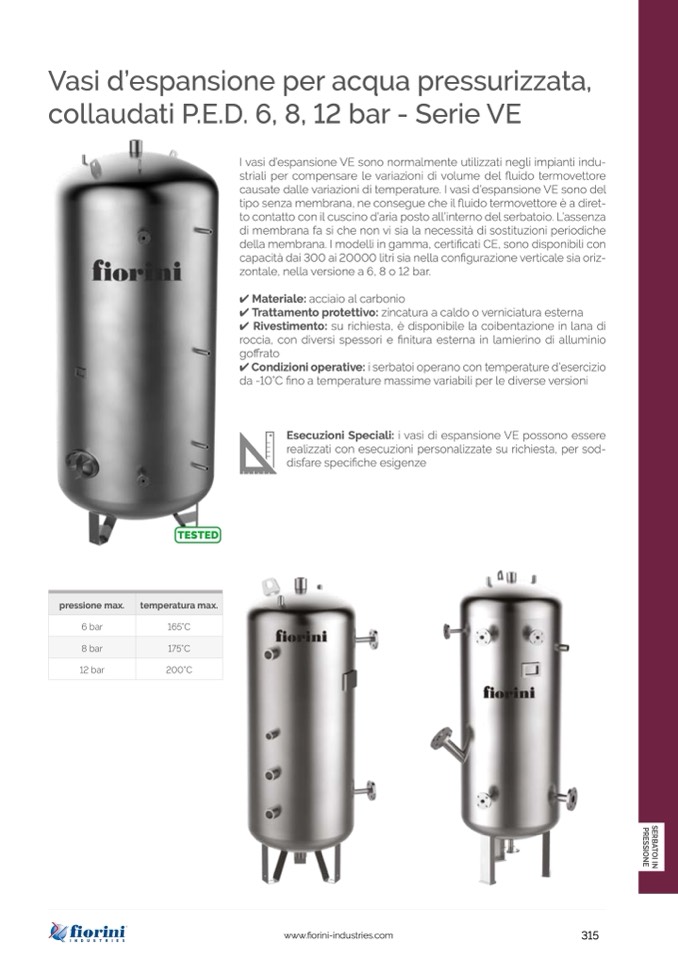 I vasi d’espansione VE sono normalmente utilizzati negli impianti indu-