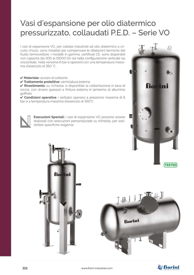 I vasi di espansione VO, per caldaie industriali ad olio diatermico a cir-