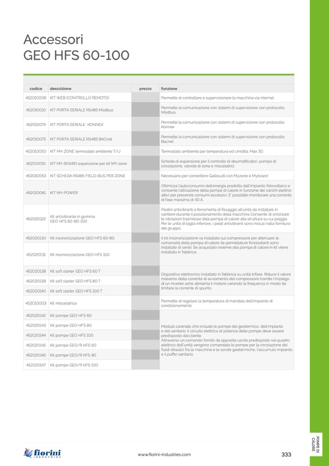 installate di serie). Se acquistato insieme alla pompa di calore in kit viene