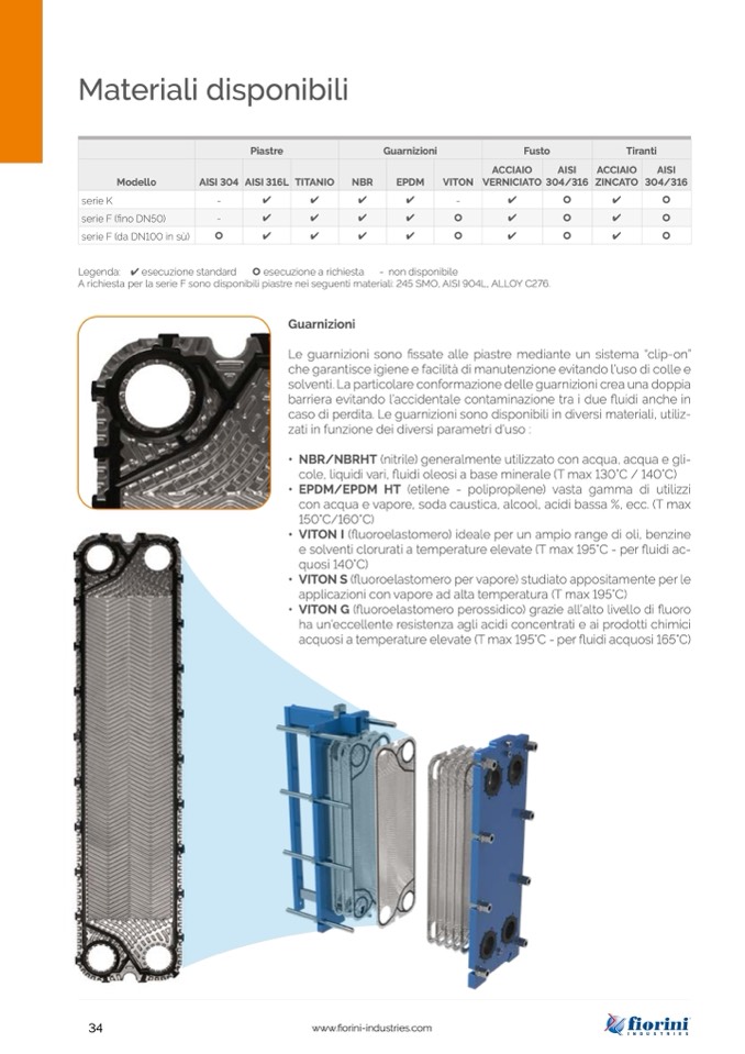 A richiesta per la serie F sono disponibili piastre nei seguenti materiali: 245 SMO, AISI 904L, ALLOY C276.