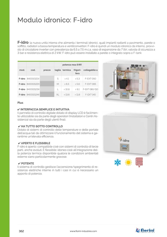 soffitto, radiatori a bassa temperatura e ventilconvettori. F-idro è quindi un modulo idronico da interno, provvi-