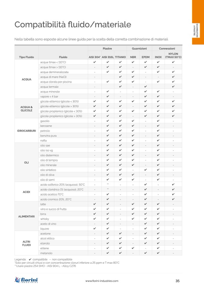 *Solo per circuiti chiusi e con concentrazione cloruri inferiore a 25 ppm e T max 80°C