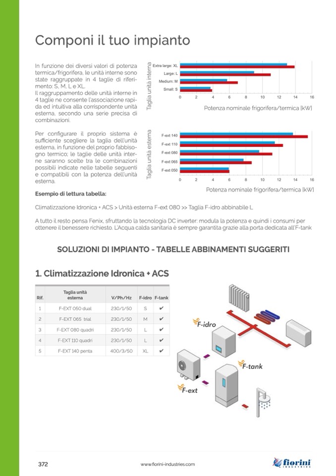 Climatizzazione Idronica + ACS > Unità esterna F-ext 080 >> Taglia F-idro abbinabile L
