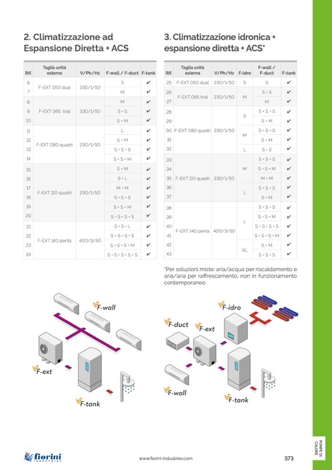 *Per soluzioni miste: aria/acqua per riscaldamento e