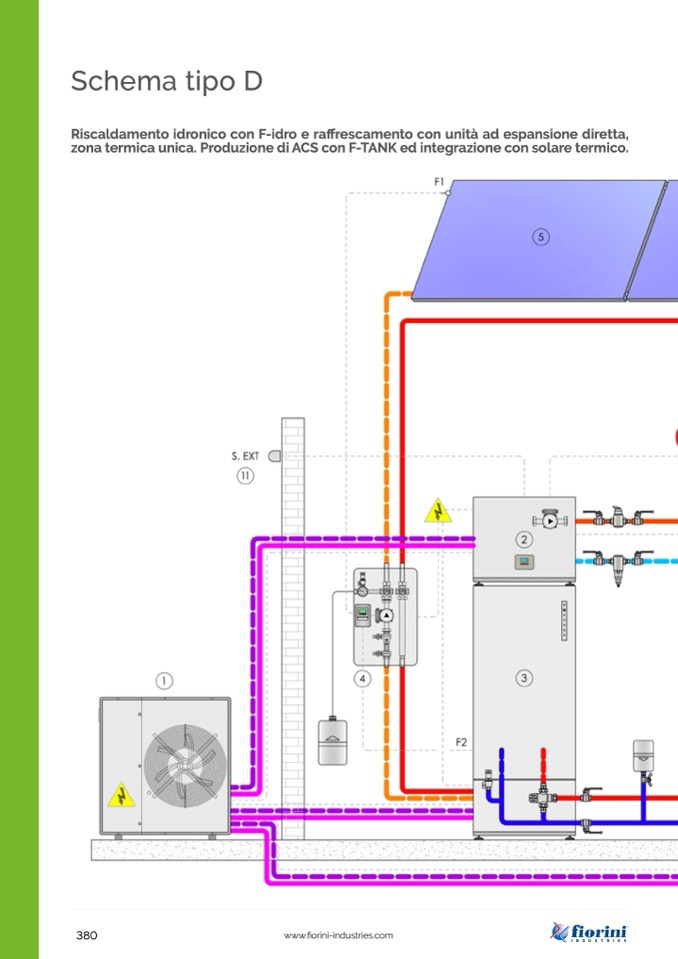 Riscaldamento idronico con F-idro e raffrescamento con unità ad espansione diretta,
