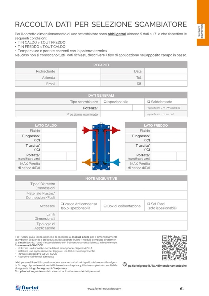 Per il corretto dimensionamento di uno scambiatore sono obbligatori almeno 5 dati su 7* e che rispettino le