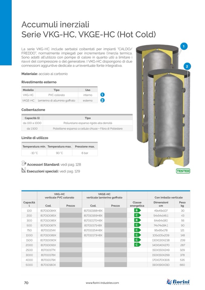 La serie VKG-HC include serbatoi coibentati per impianti “CALDO/