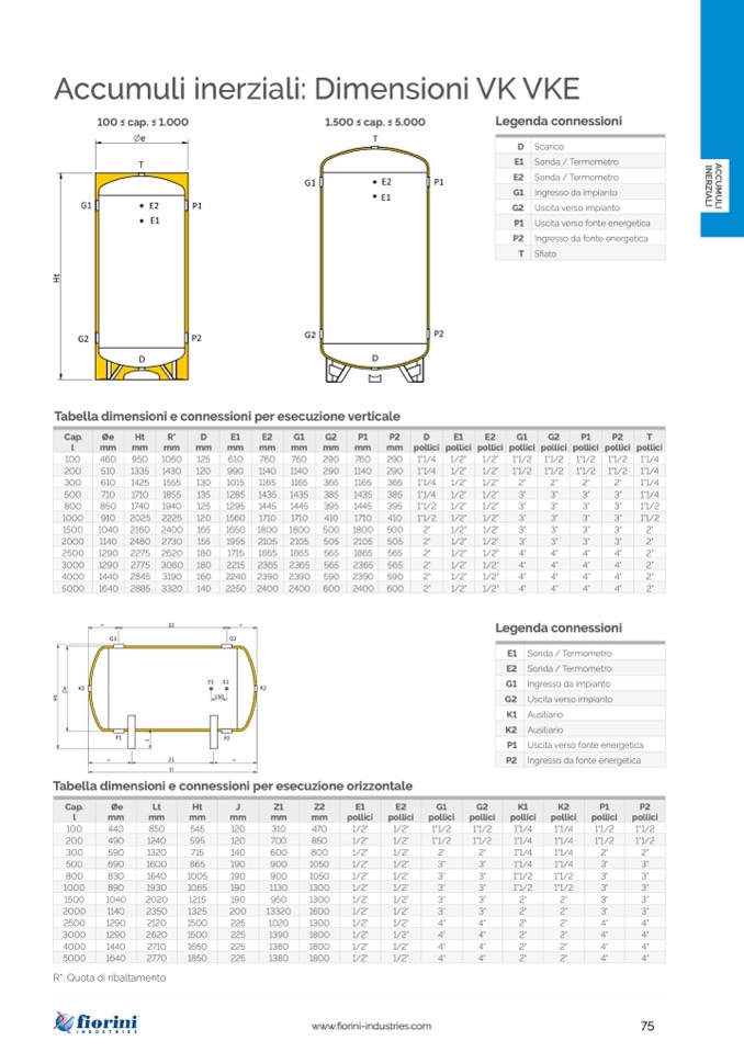 Tabella dimensioni e connessioni per esecuzione orizzontale