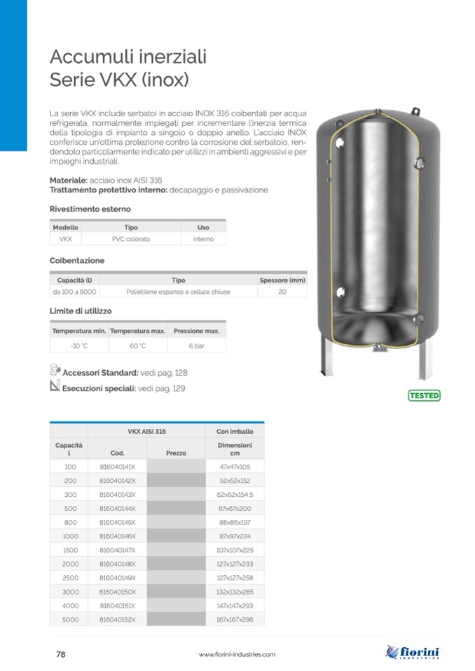 La serie VKX include serbatoi in acciaio INOX 316 coibentati per acqua