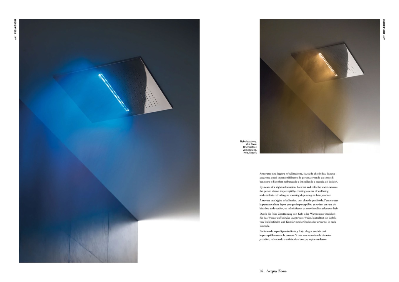 By means of a slight nebulisation, both hot and cold, the water caresses