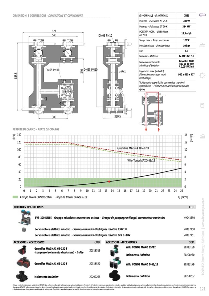 TV3-300 DN65 - Gruppo miscelato servomotore escluso - Groupe de pompage mélangé, servomoteur non inclus