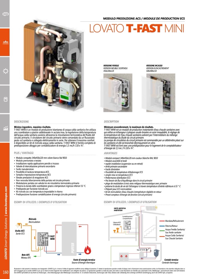 è disponibile un kit di ricircolo acqua calda sanitaria. T-FAST MINI è fornito completo di