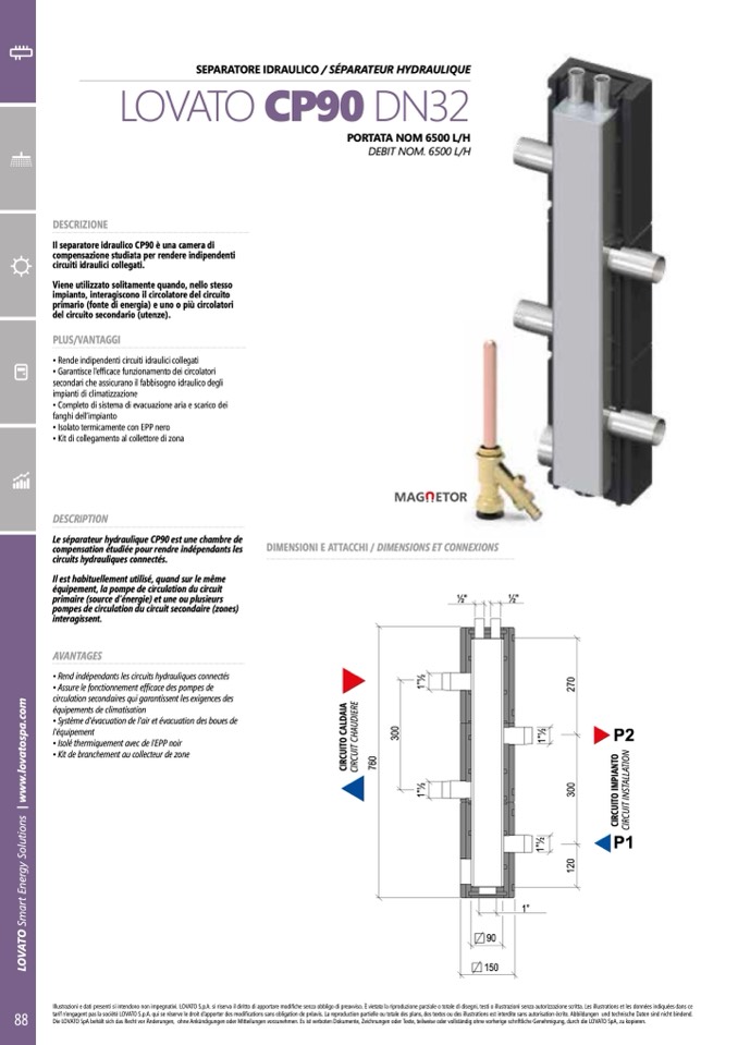 Il separatore idraulico CP90 è una camera di