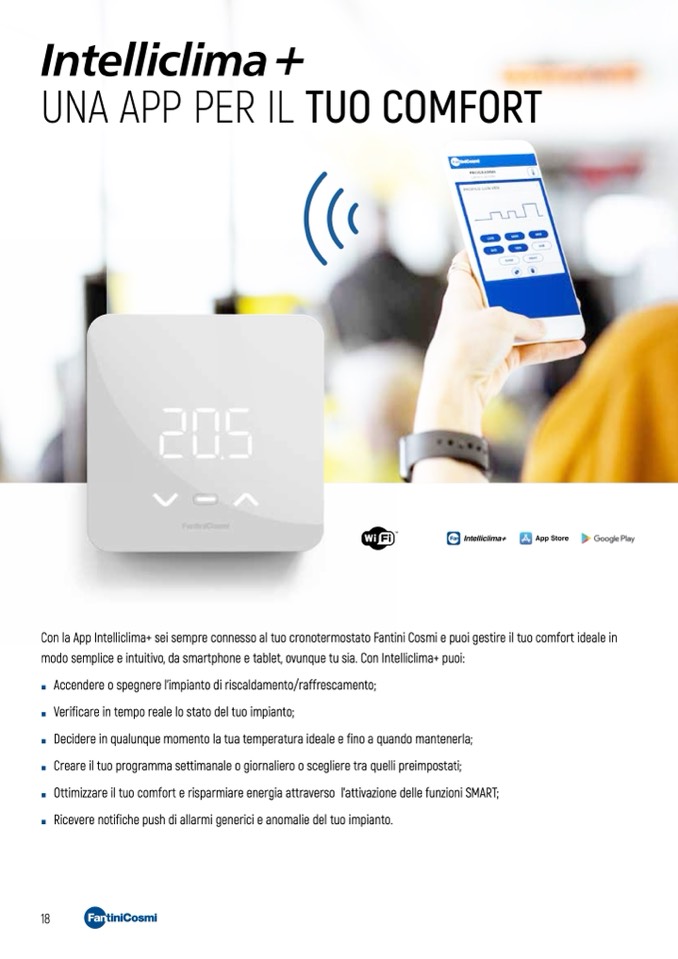 Con la App Intelliclima+ sei sempre connesso al tuo cronotermostato Fantini Cosmi e puoi gestire il tuo comfort ideale in