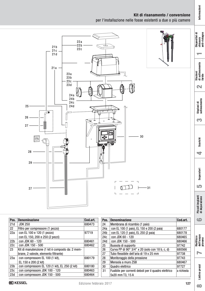 con compressore EL 120 (1 kit), EL 250 (2 kit)