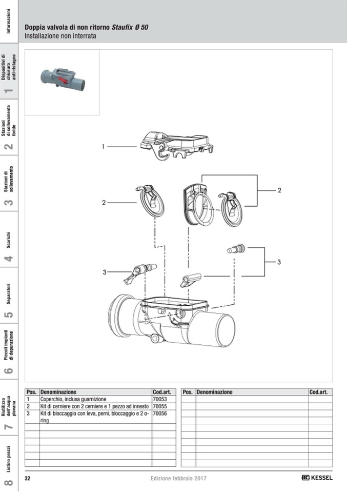 Kit di bloccaggio con leva, perni, bloccaggio e 2 o-