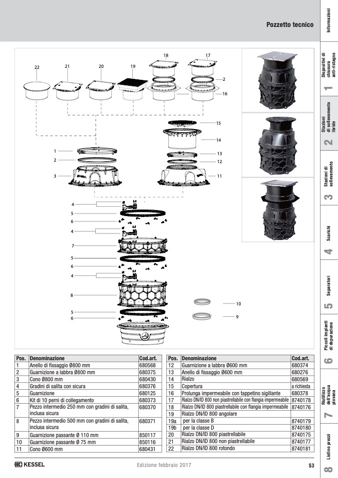 Rialzo DN/ID 800 non piastrellabile con flangia impermeabile