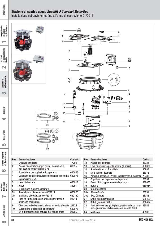 Installazione nel pavimento, fino all'anno di costruzione 01/2017