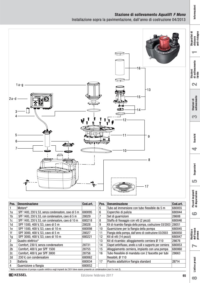 * Nella combinazione di pompa e quadro elettrico negli impianti da 230 V deve essere presente un condensatore (non 0 e non 2).