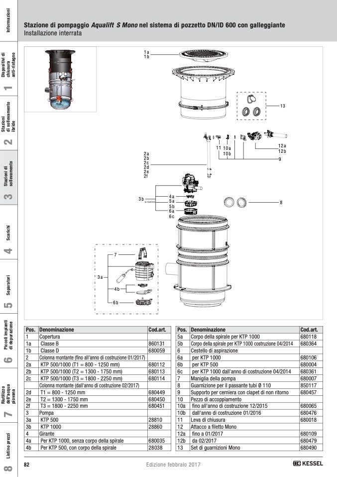 Stazione di pompaggio Aqualift S Mono nel sistema di pozzetto DN/ID 600 con galleggiante
