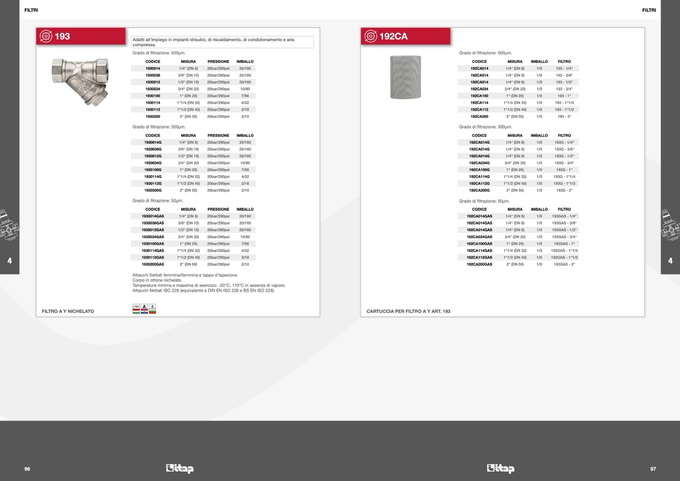 Grado di filtrazione: 50μm.