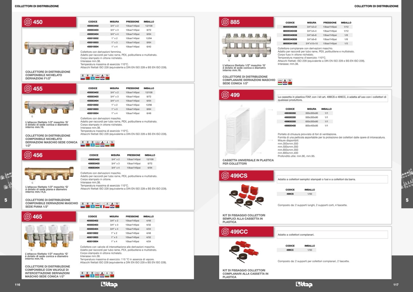 La cassetta in plastica ITAP, con i kit art. 499CS e 499CC, è adatta all’uso con i collettori di