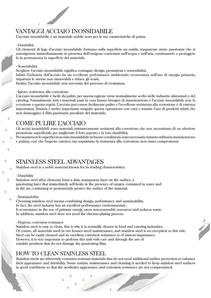 eccezione a questa regola. L’acciaio può essere facilmente pulito e l’eccellente resistenza alla corrosione è di estrema