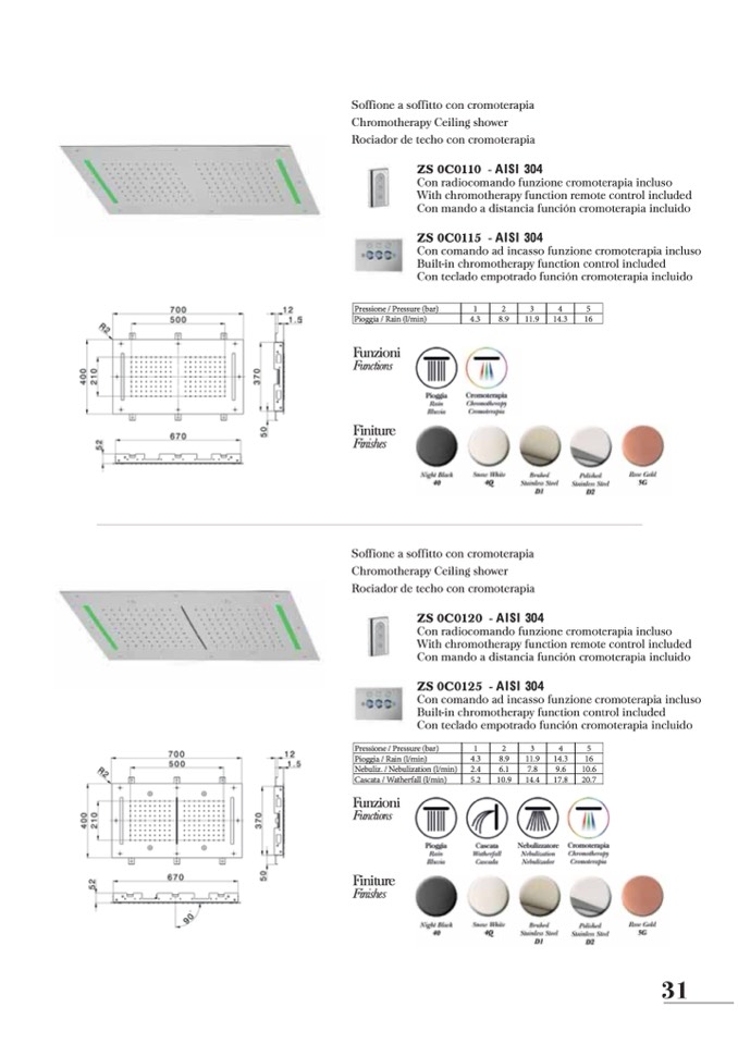 Chromotherapy Ceiling shower