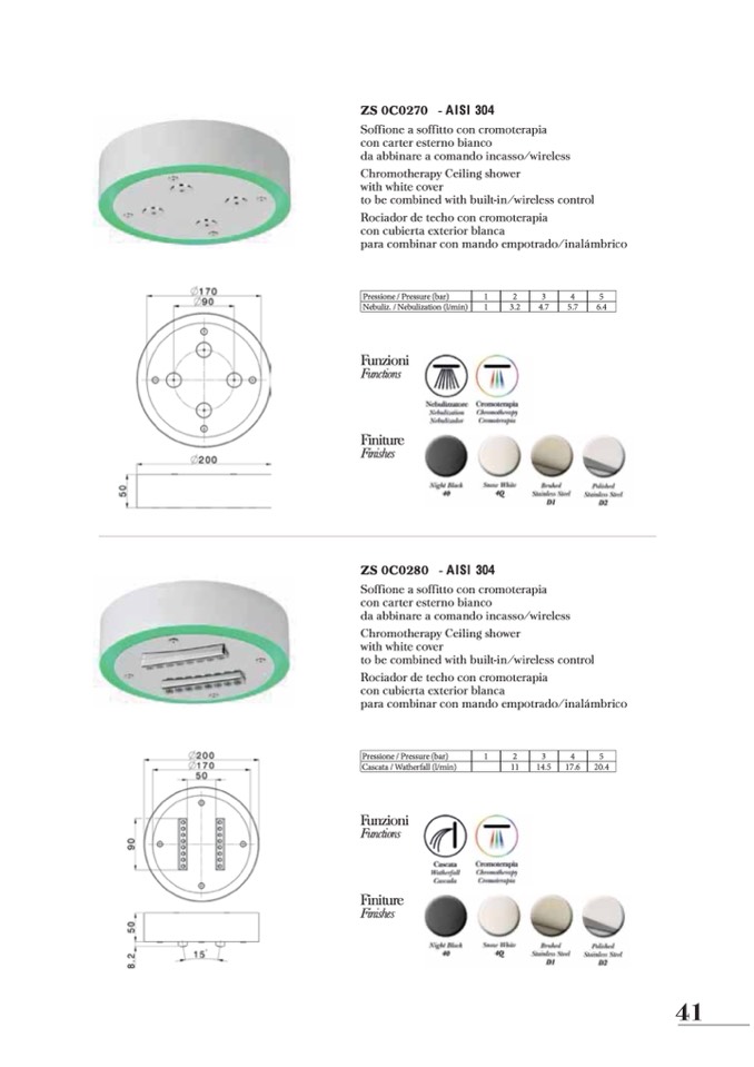 Soffione a soffitto con cromoterapia