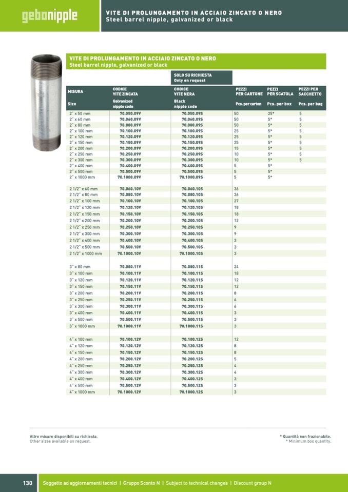 * Quantità non frazionabile.