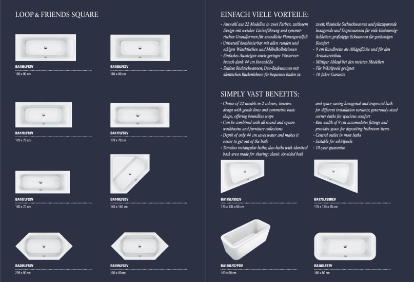 · Zeitlose Rechteckwannen; Duo-Badewannen mit