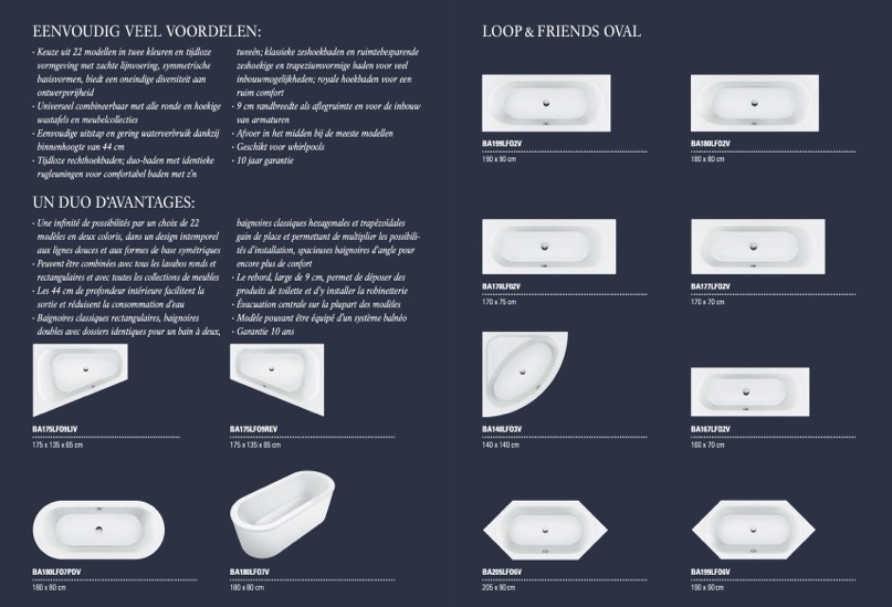 · Tijdloze rechthoekbaden; duo-baden met identieke