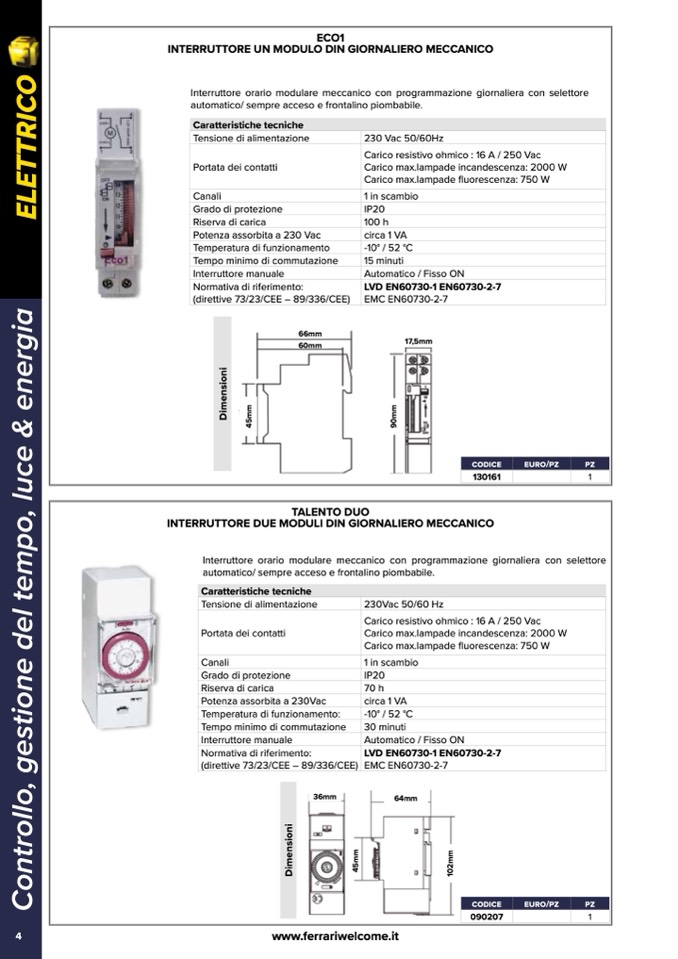 INTERRUTTORE DUE MODULI DIN GIORNALIERO MECCANICO