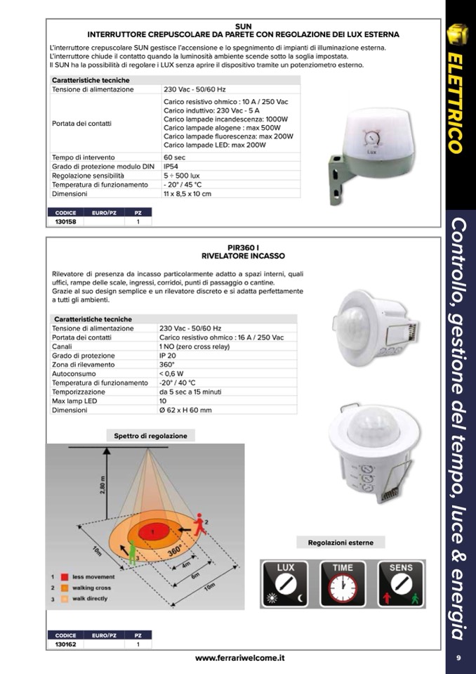 INTERRUTTORE CREPUSCOLARE DA PARETE CON REGOLAZIONE DEI LUX ESTERNA