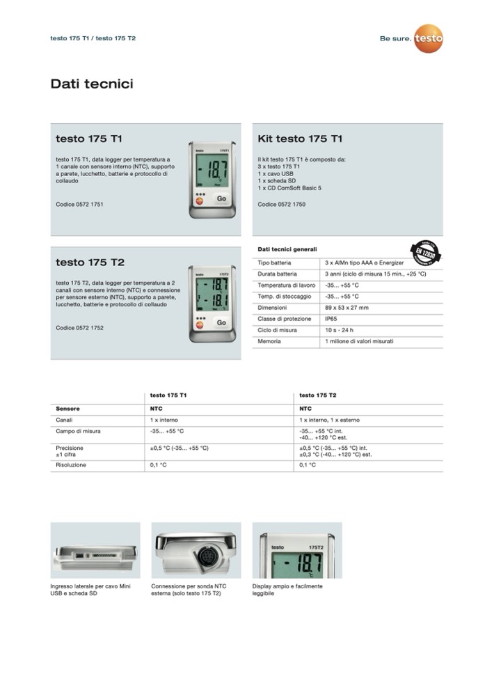 testo 175 T1, data logger per temperatura a