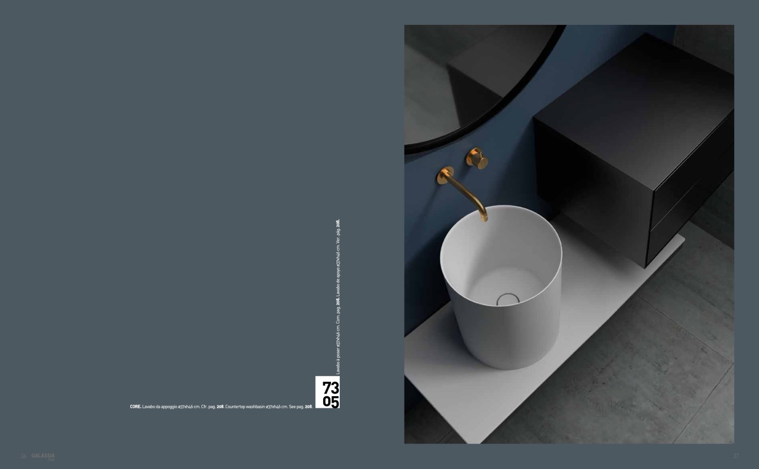CORE. Lavabo da appoggio ø37xh46 cm. Cfr. pag. 208. Countertop washbasin ø37xh46 cm. See pag. 208.
