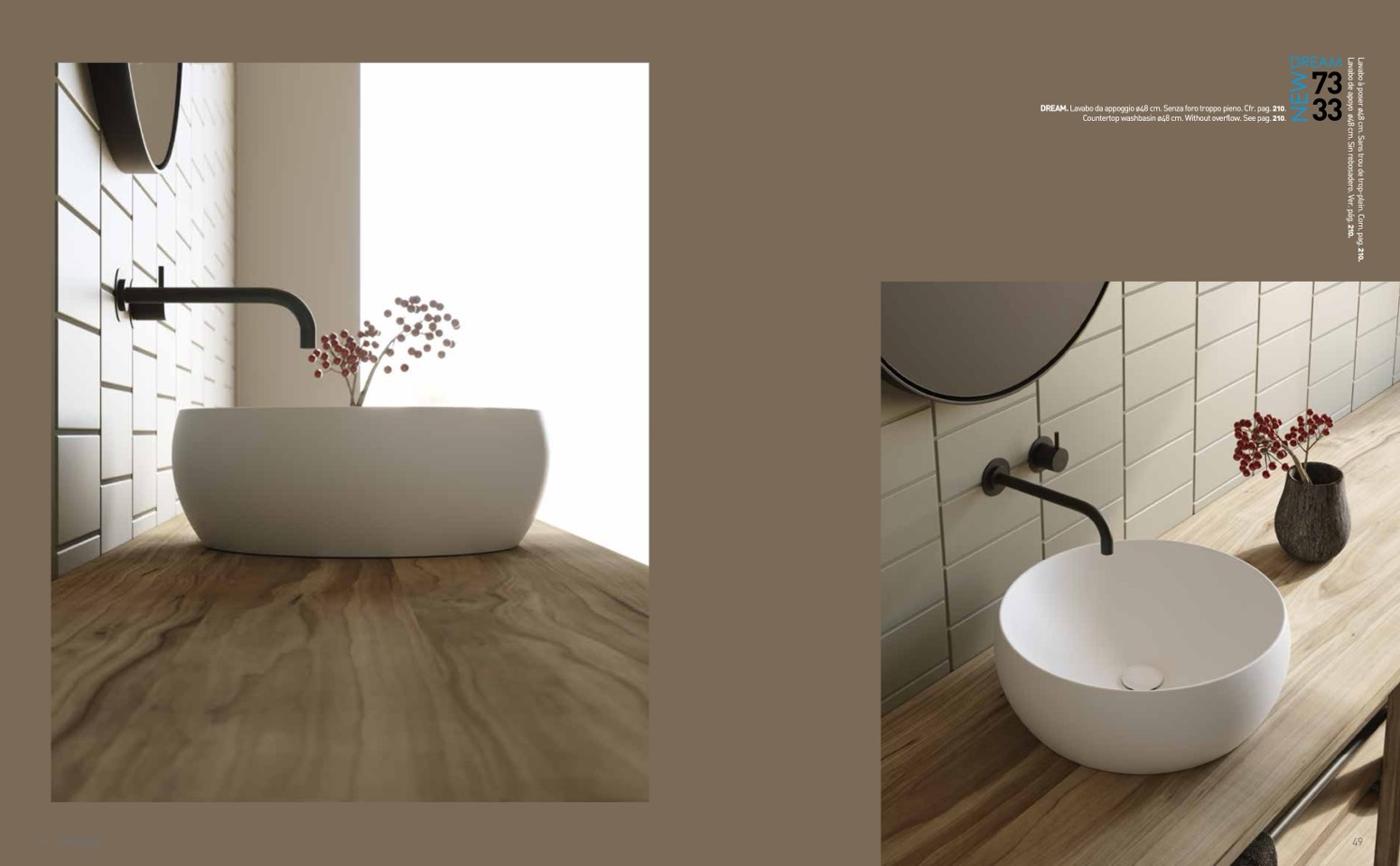 DREAM. Lavabo da appoggio ø48 cm. Senza foro troppo pieno. Cfr. pag. 210.