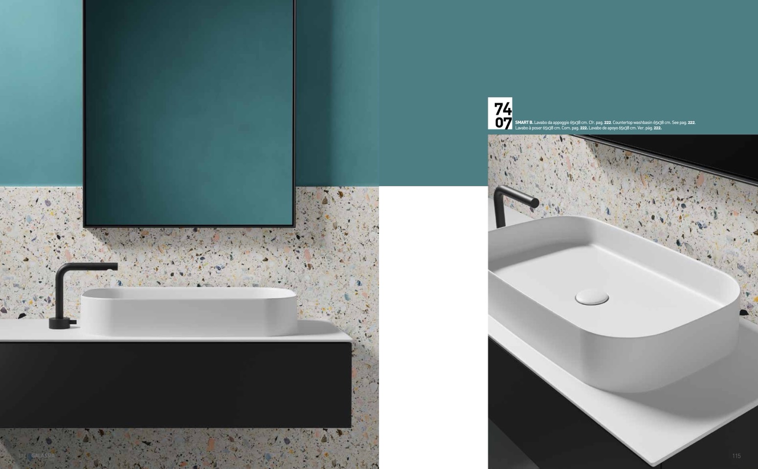 SMART B. Lavabo da appoggio 65x38 cm. Cfr. pag. 222. Countertop washbasin 65x38 cm. See pag. 222.