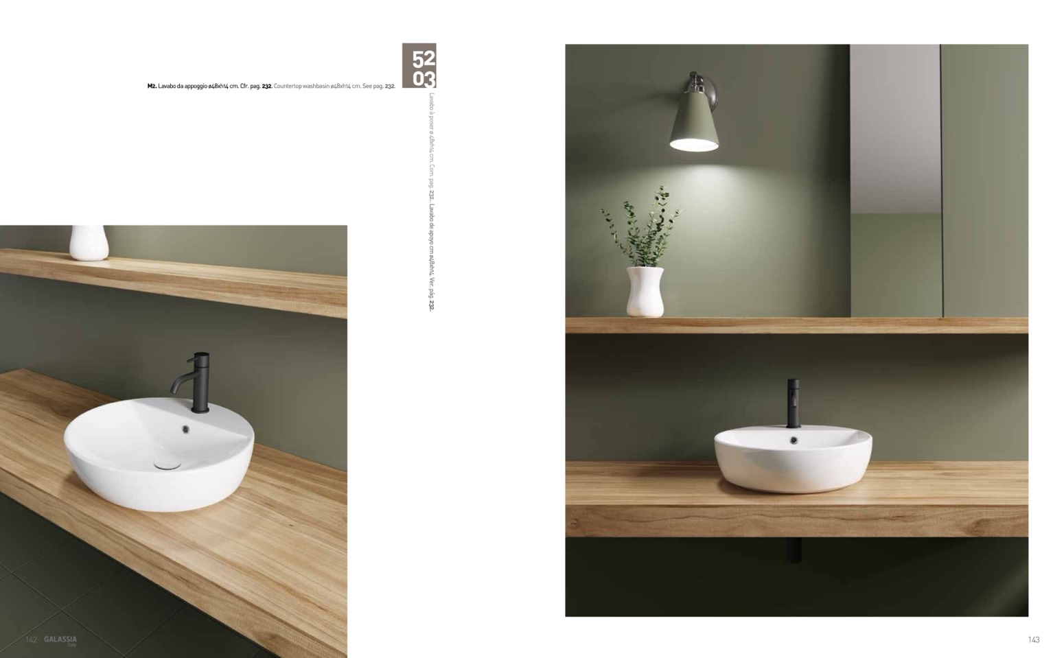 M2. Lavabo da appoggio ø48xh14 cm. Cfr. pag. 232. Countertop washbasin ø48xh14 cm. See pag. 232.