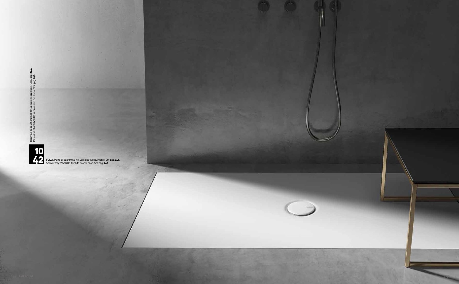 FOLIA. Piatto doccia 100x70 H3, versione filo pavimento. Cfr. pag. 244.