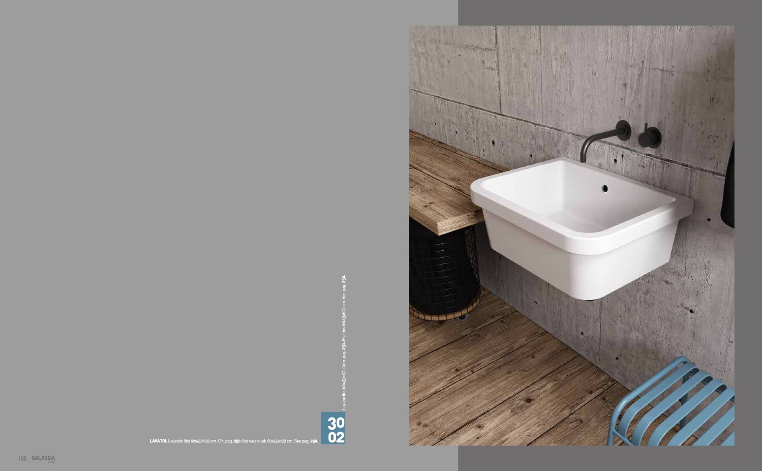 LAVATOI. Lavatoio Ibis 60x45xh22 cm. Cfr. pag. 250. Ibis wash-tub 60x45xh22 cm. See pag. 250.