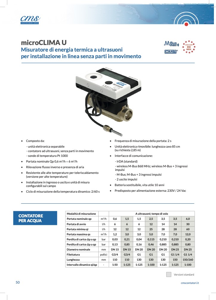 - contatore ad ultrasuoni, senza parti in movimento