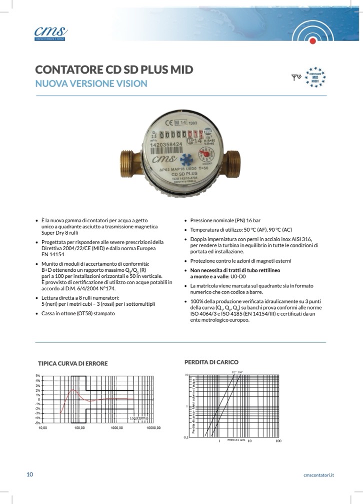 ISO 4064/3 e ISO 4185 (EN 14154/III) e certificati da un