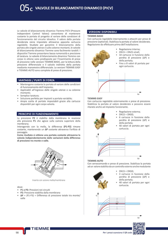 di taratura. Le valvole di bilanciamento dinamico Tiemme con