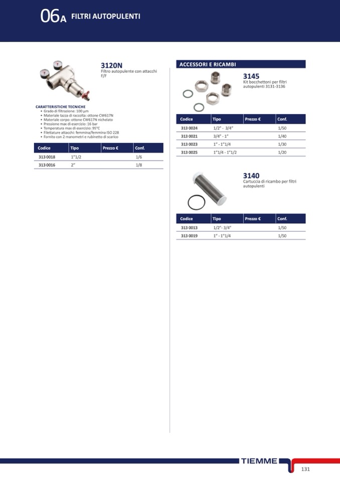 • Filettature attacchi: femmina/femmina ISO 228